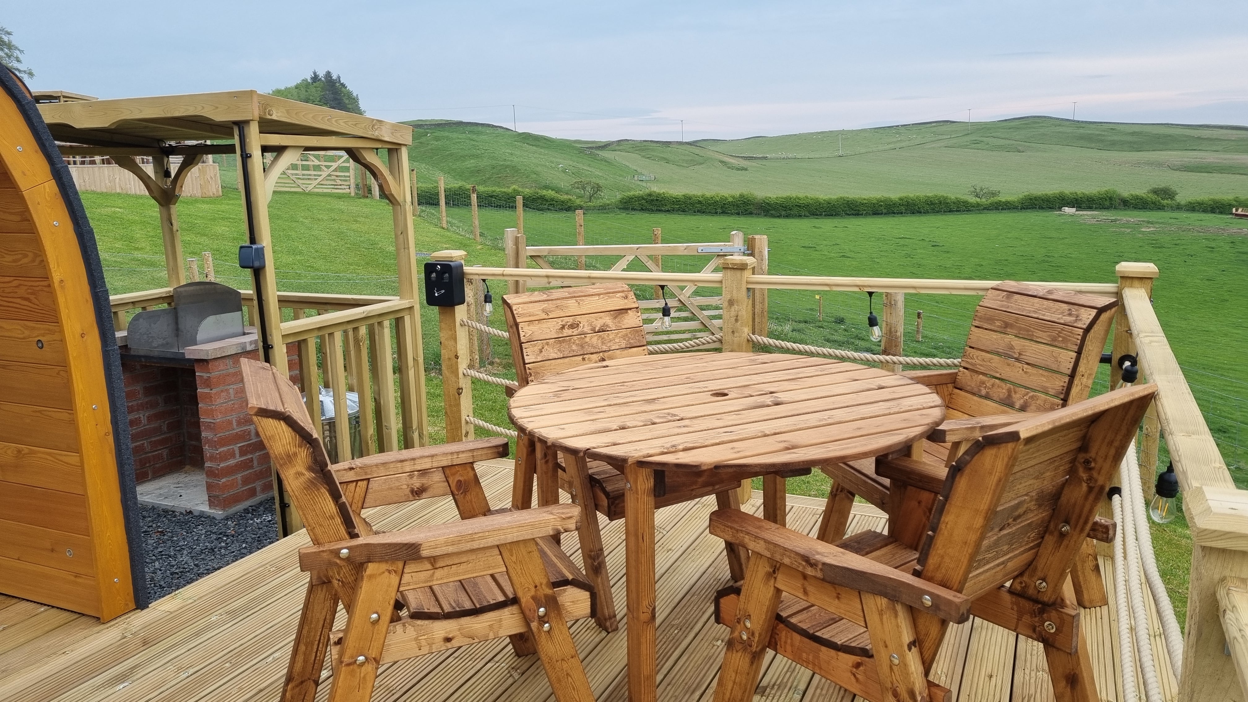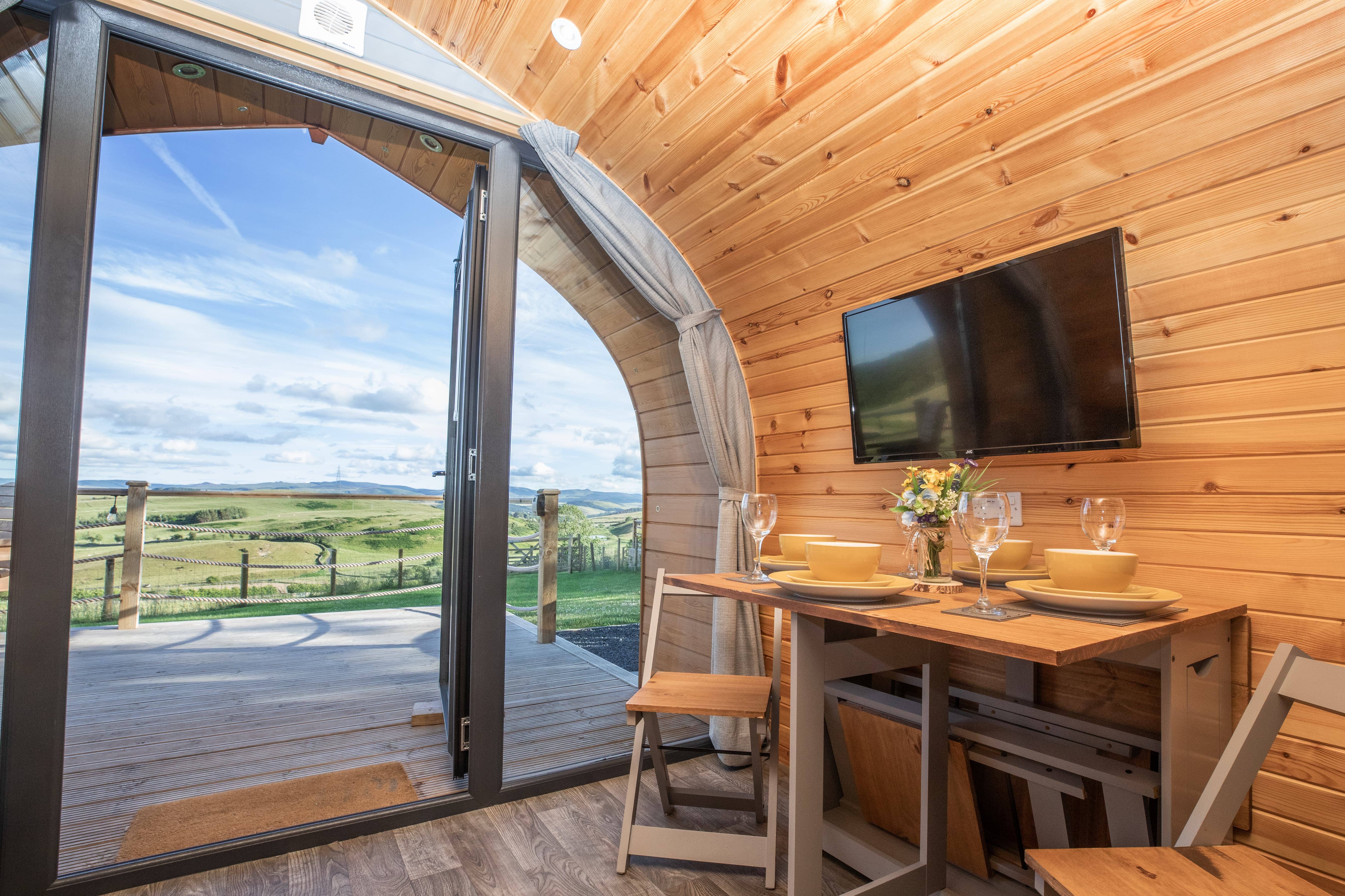Enjoy luxury Glamping at it's best! Fully equipped Snugs with en-suite, kitchen and double bed. Peace and quiet, starry nights, wood fired hot tubs and a breath taking view.